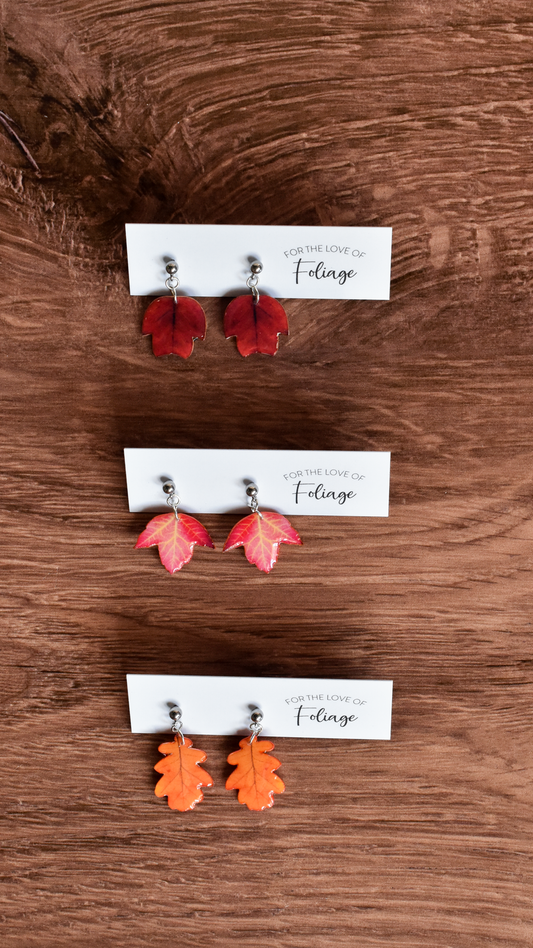 Red Sycamore Stud Plant Earrings | Leaf Earrings