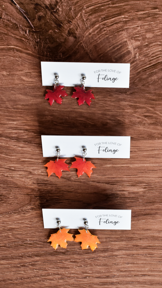 Red Maple Leaf Stud Plant Earrings | Leaf Earrings