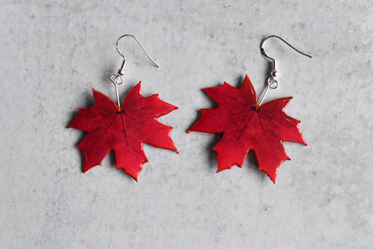 Red Maple Leaf Plant Earrings | Leaf Earrings