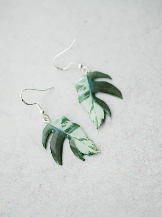 Epipremnum Pinnatum Albo Plant Earrings | Leaf Earrings