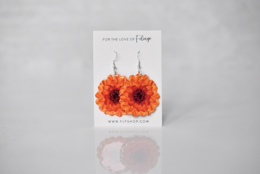 Orange Burst Ball Dahlia Blossom Flower Earrings
