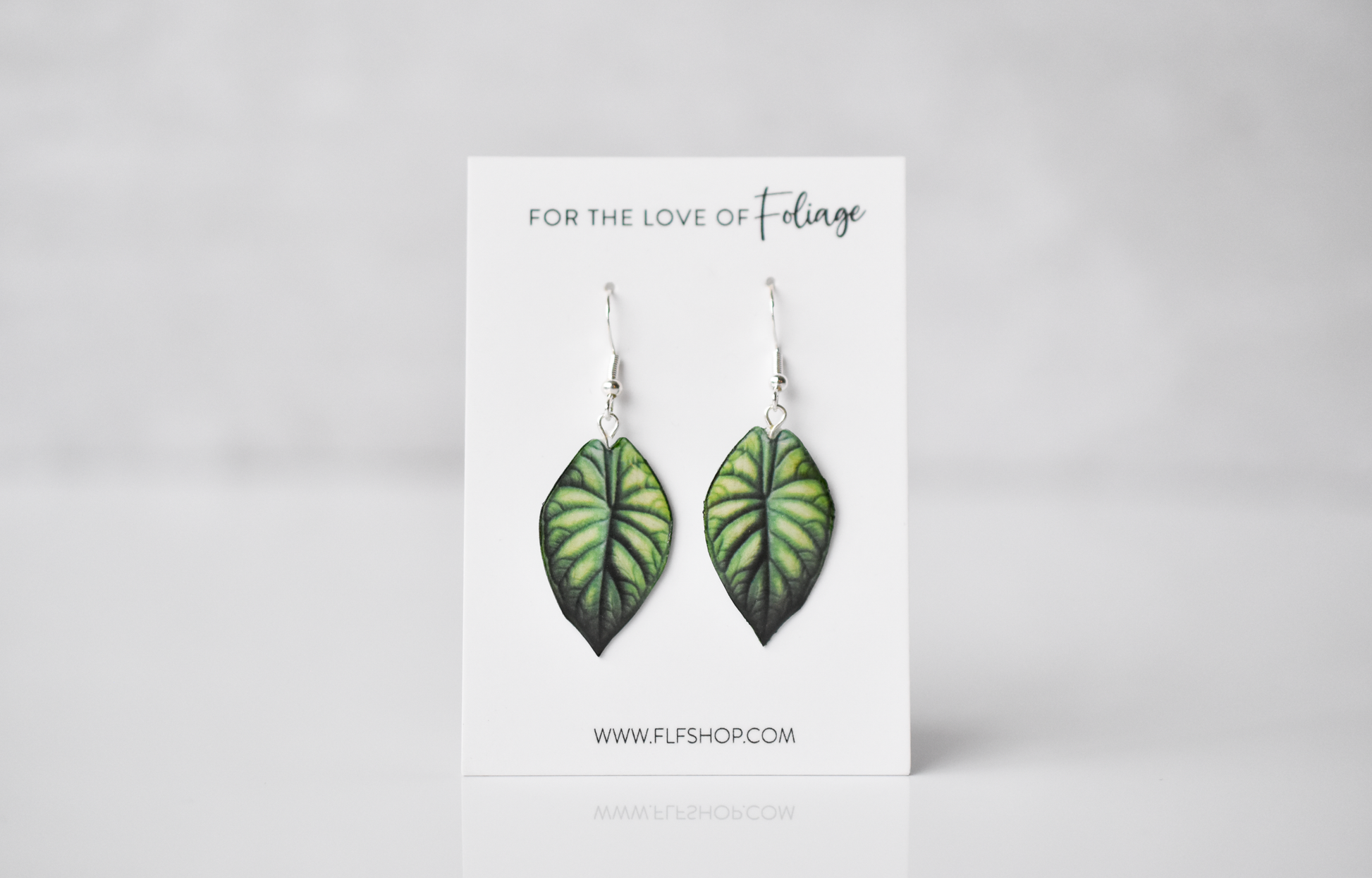 Show off your love of plants with these unique Alocasia Dragon Scale Plant Earrings!