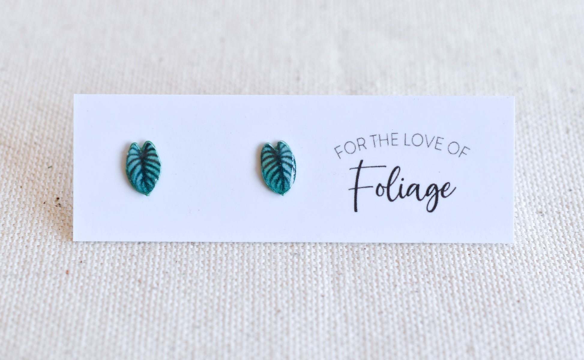Alocasia Silver Dragon Stud Earrings | Leaf Earrings