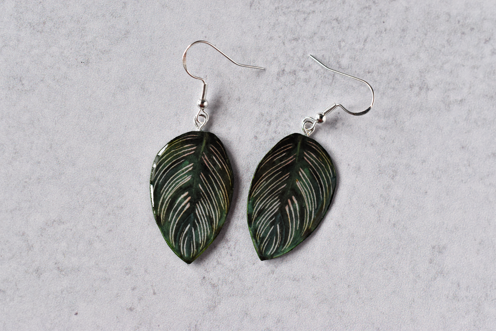 Bring the beauty of a Calathea Ornata "Pink Stripe" Plant into your wardrobe with these handmade, lifelike leaf earrings!