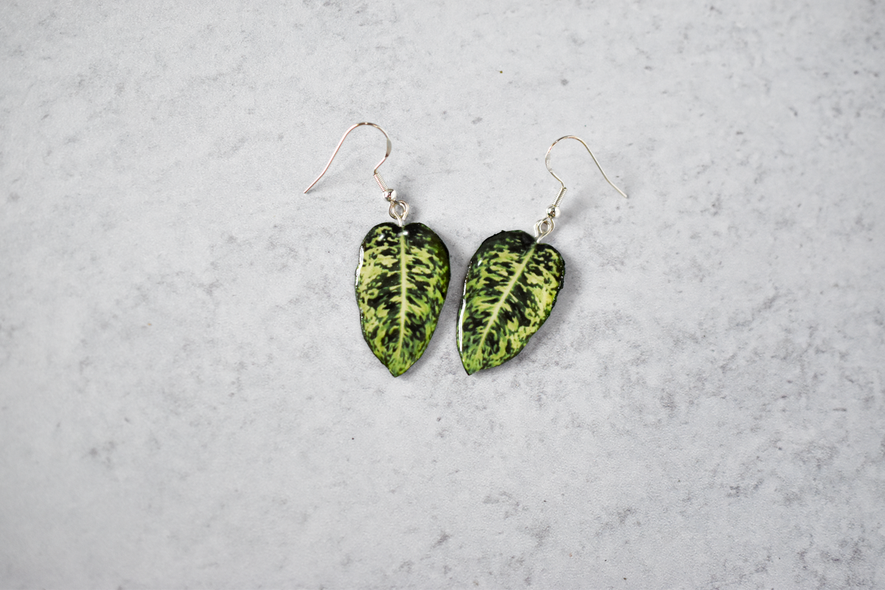 Dieffenbachia "Reflector" Plant Earrings | Leaf Earrings