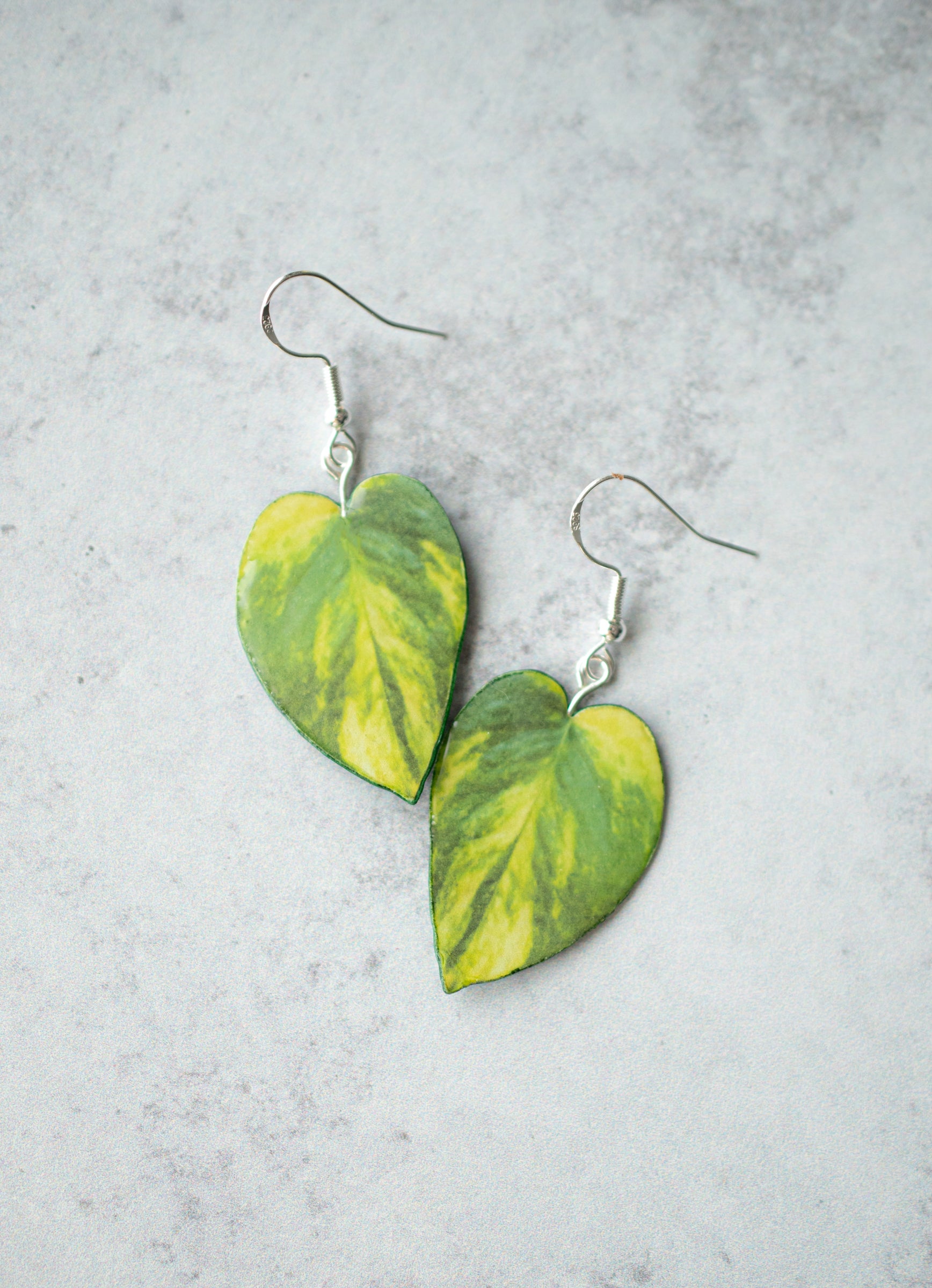 Epipremnum Aureum "Golden Pothos" Plant Earrings | Leaf Earrings