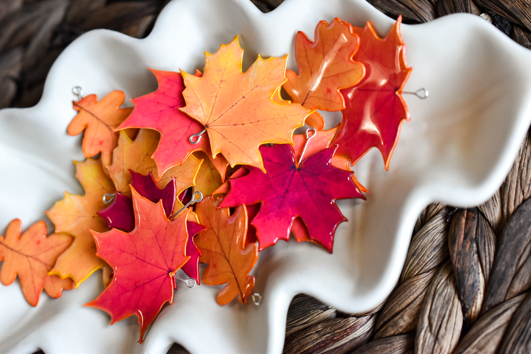 Handmade in Cleveland, Ohio with paper and resin, these leaf earrings look just like the real thing, but last forever! Now double sided too!