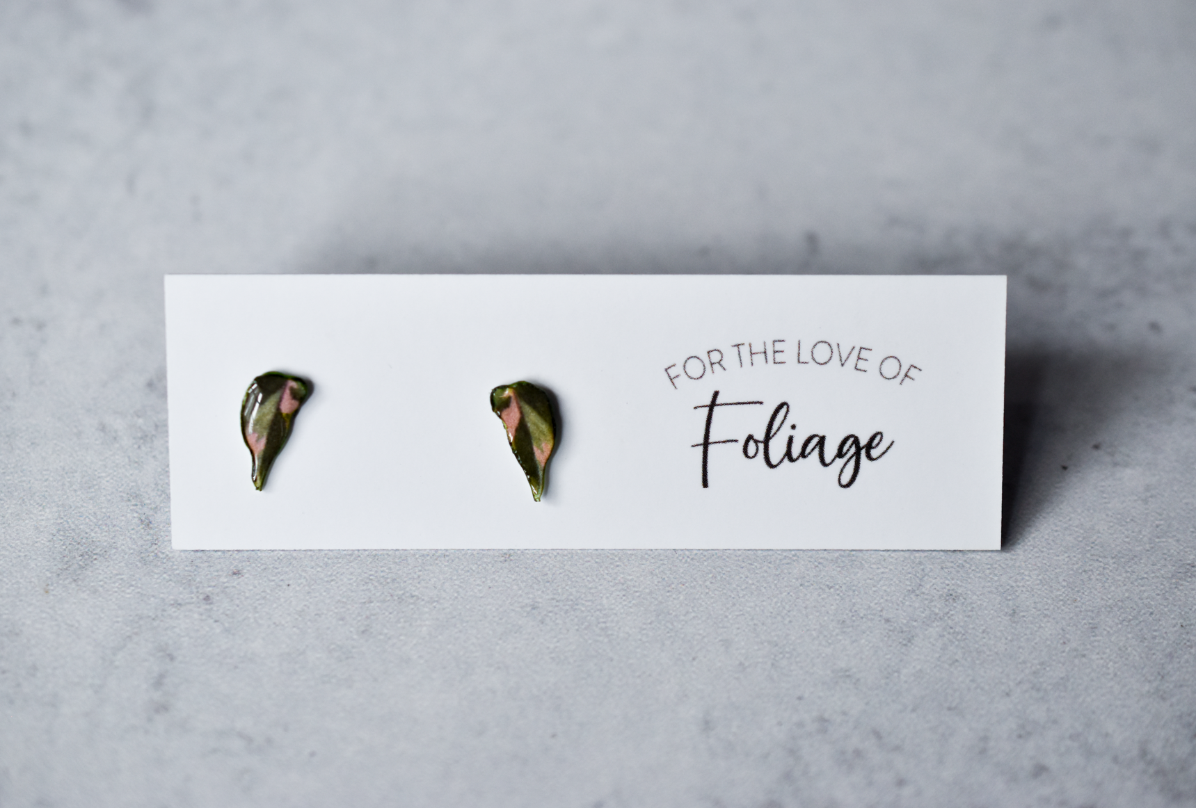 Philodendron Pink Princess Stud Earrings | Leaf Earrings
