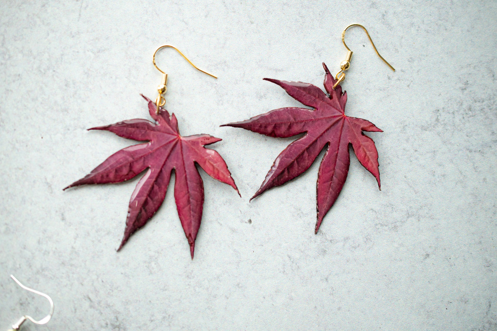 Add a touch of red to your look this fall with these jumbo Japanese Maple earrings!
