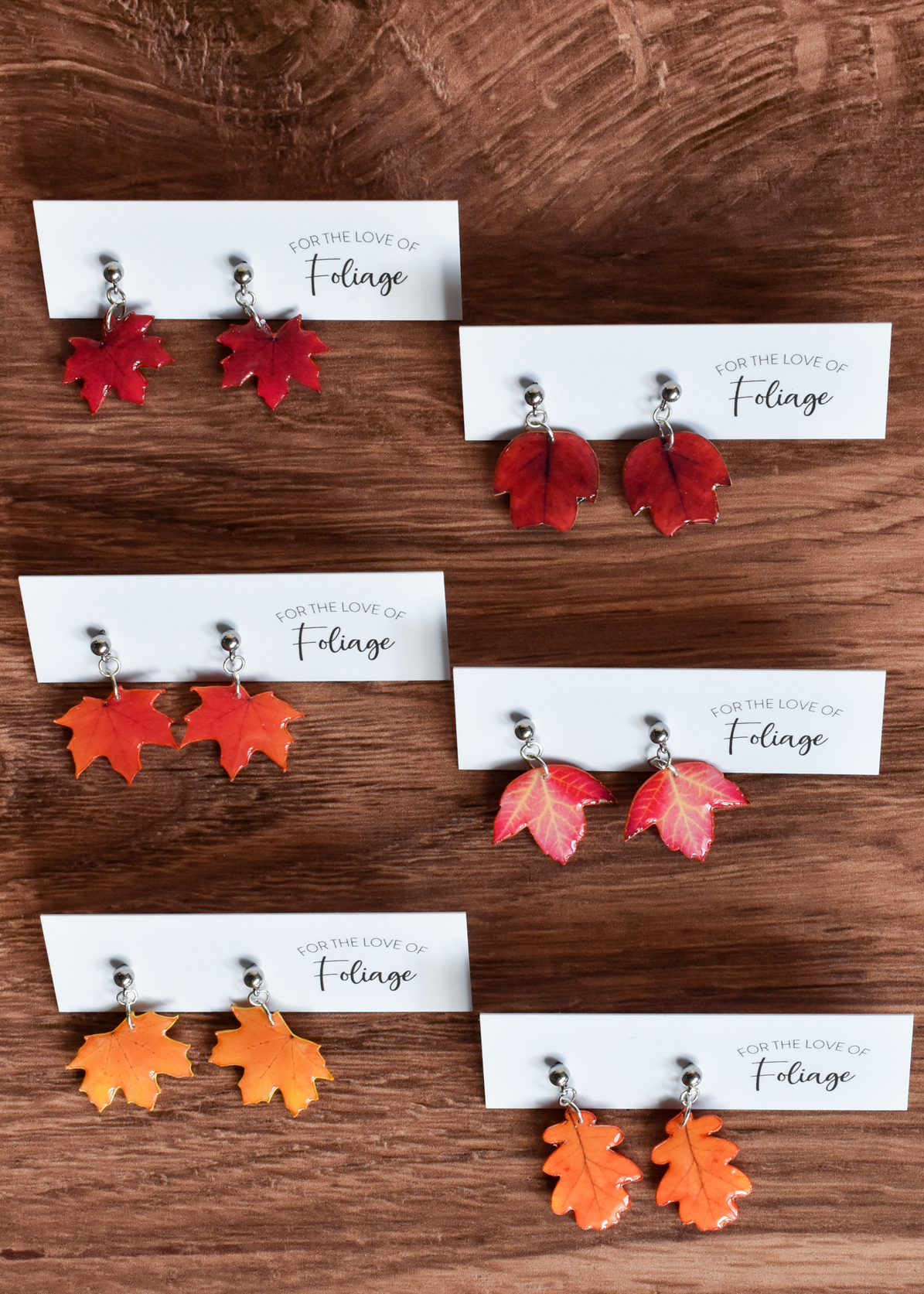 Perfect for adding a hint of Fall to your look, they're handmade in Cleveland, Ohio from paper and resin. (Now double sided too!)